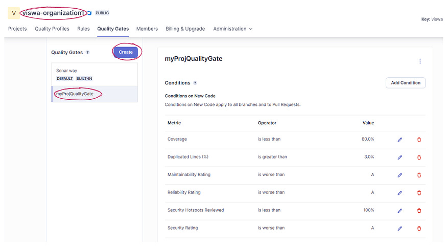 Though the Sonar way quality gate is suitable for most projects, there are cases where you may want to make adjustments. In those situations, you can create a new quality gate definition and either just make it available to projects in the organization or set it as the default for all new projects.